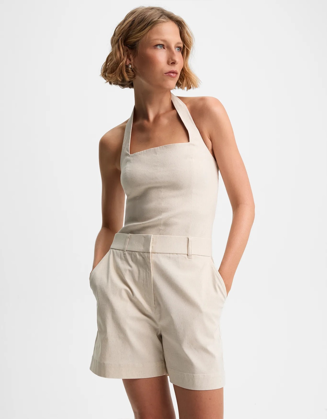 Shorts de comprimento médio, modelagem alfaiatada, cintura média, Possui bolsos frontais e traseiros