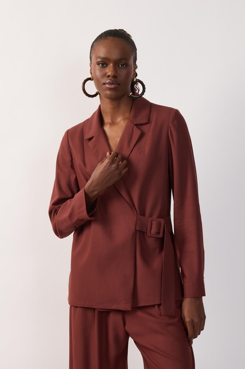 Pura perfeição! Possui o toque natural do linho, modelagem ampla, gola padrão, decote v, e fechamento transpassado com fivela forrada. Perfeito para uma produção elegante e autêntica.