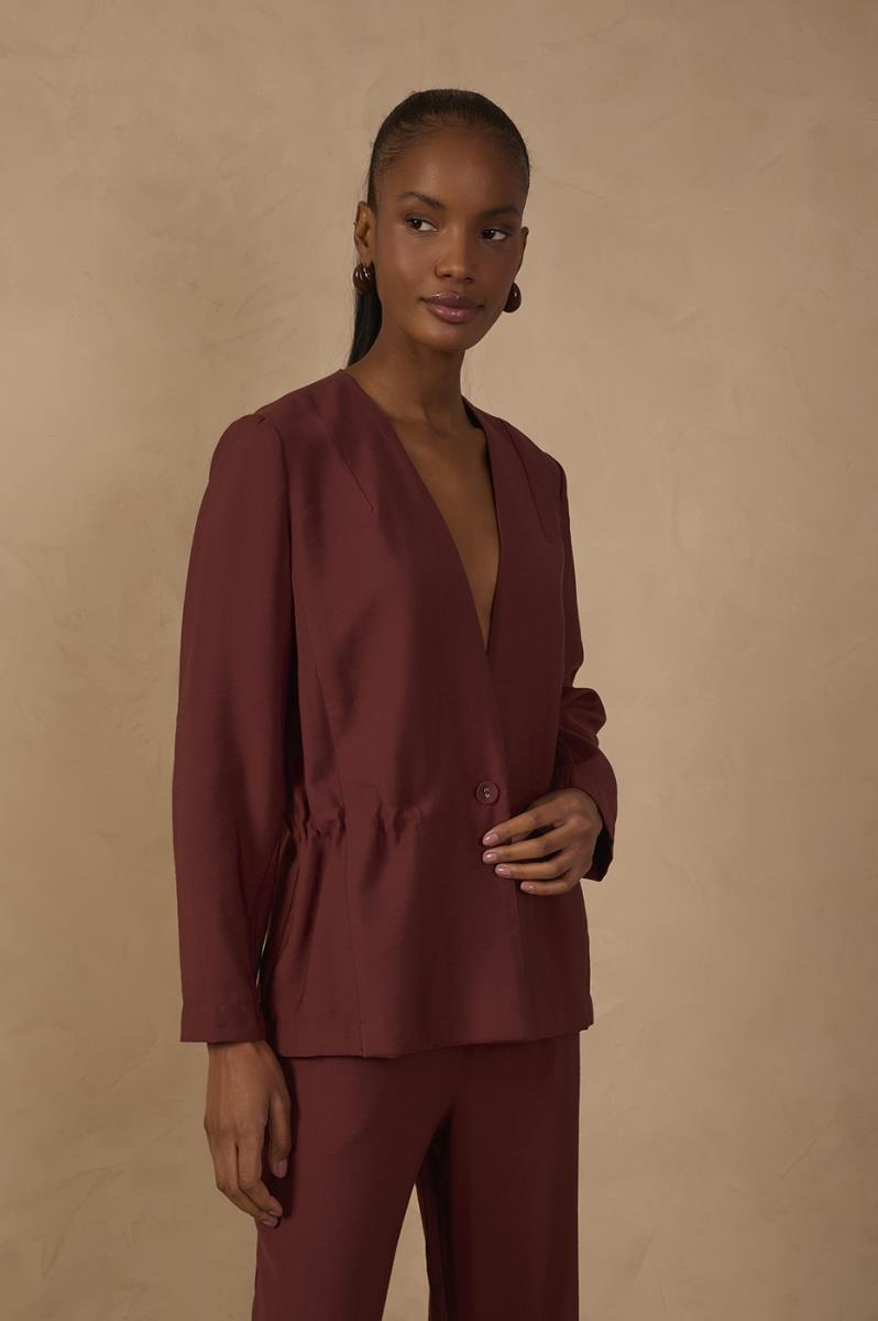 Sofisticação e modernidade em uma única peça. Este blazer em tom terroso é o destaque que faltava para suas composições de outono. Com um corte limpo e acabamento impecável, ele traz o diferencial das mangas ajustáveis, permitindo que você mude a proposta do look em segundos — do clássico ao moderno.