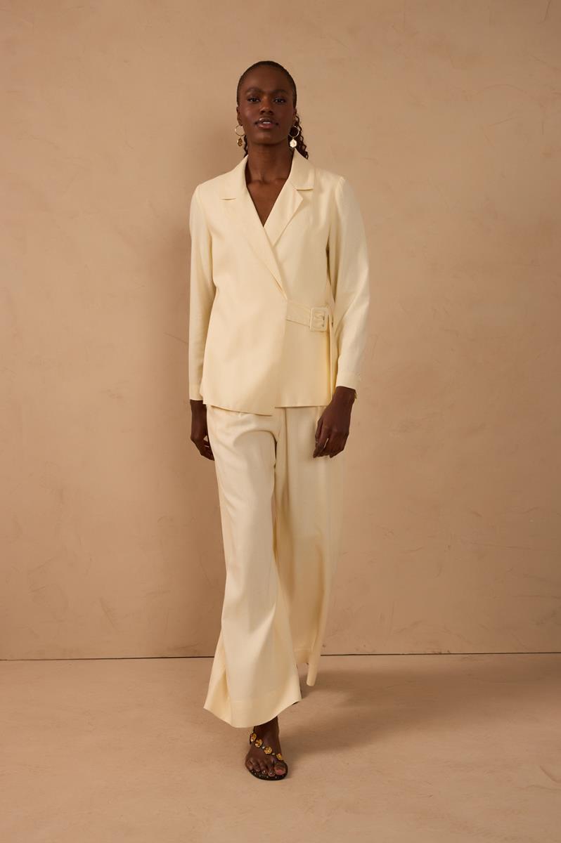 CALÇA LINHO PREGAS NEVOA