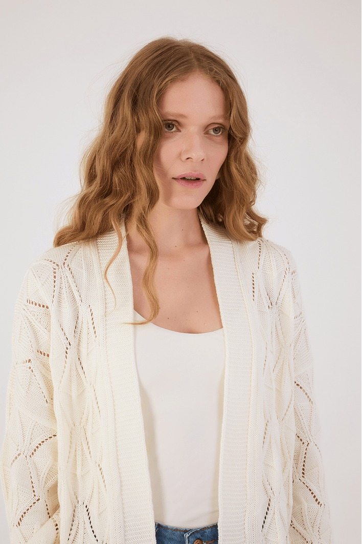 Casaco produzido em tricot, possui comprimento alongado, mangas longas com punhos ajustados, abertura frontal e shape soltinho. Puro desejo para os dias que pedem delicadeza e conforto.