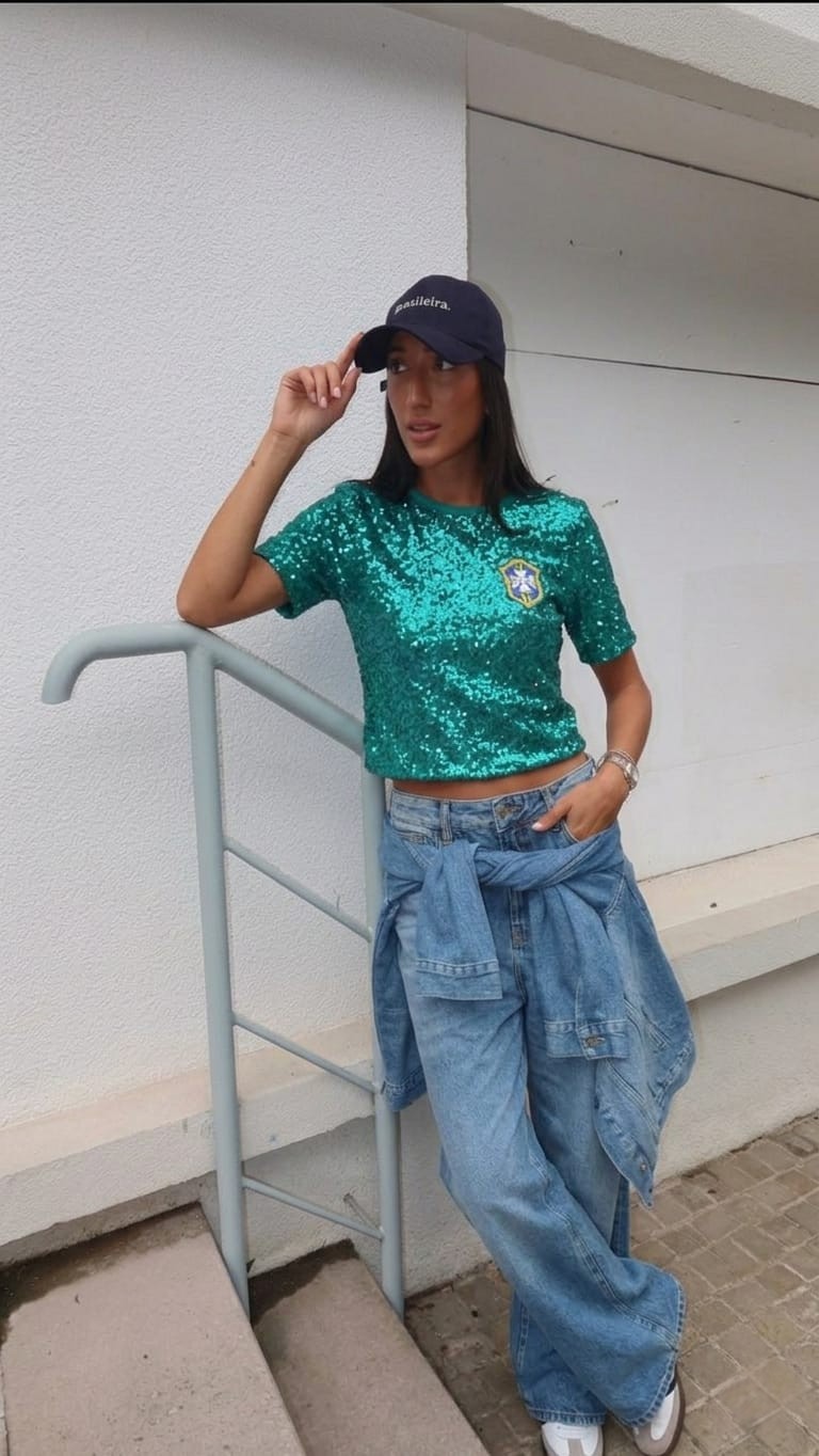 CROPPED PAETÊ VERDE BRASÃO BRASIL